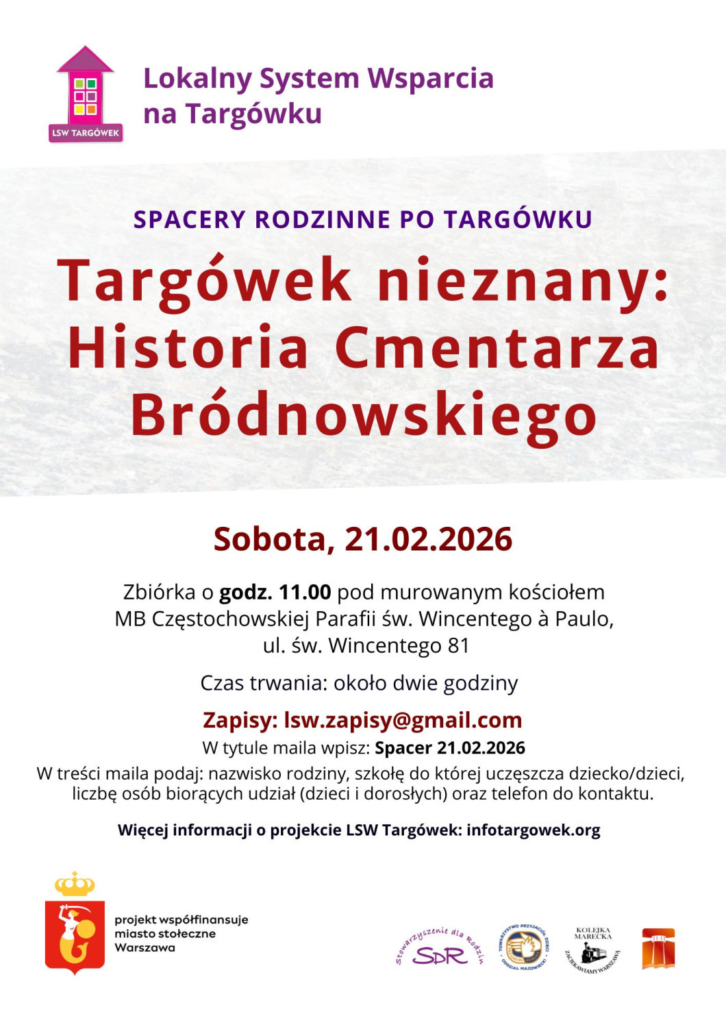 Spacer dla rodzin - Targówek nieznany - Historia Cmentarza Bródnowskiego 21 lutego 2026 r. godz. 11:00